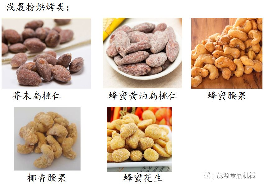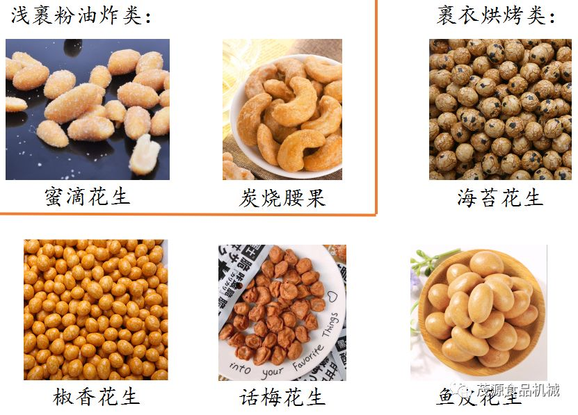 裹衣/裹粉類產(chǎn)品是近年來較為熱銷的產(chǎn)品之一。通過糖漿向物料表面沾粘面粉+糕粉+變性淀粉+其他特色配料,來改變或賦予原有堅(jiān)果/籽類所不具備的形狀/風(fēng)味。