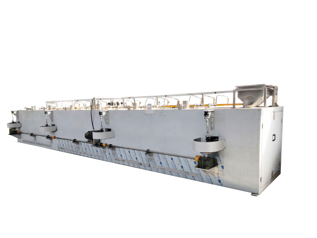 全自動(dòng)平面回轉(zhuǎn)烤爐主要用于堅(jiān)果炒貨及籽類產(chǎn)品裹衣裹粉后的烘烤加工。采用直燃式加熱方式,熱量直接作用于食品上,烘烤香味更濃郁,并通過(guò)設(shè)備的搖擺避免食品粘連變形。具有烘烤口味色澤優(yōu)良, 沒(méi)有污染等特點(diǎn)。